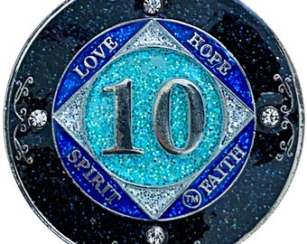 Amazon Com 10 Year Na Narcotics Anonymous Anniversary Medallion Keychain For Clean Birthday With 3rd Step Prayer Automotive