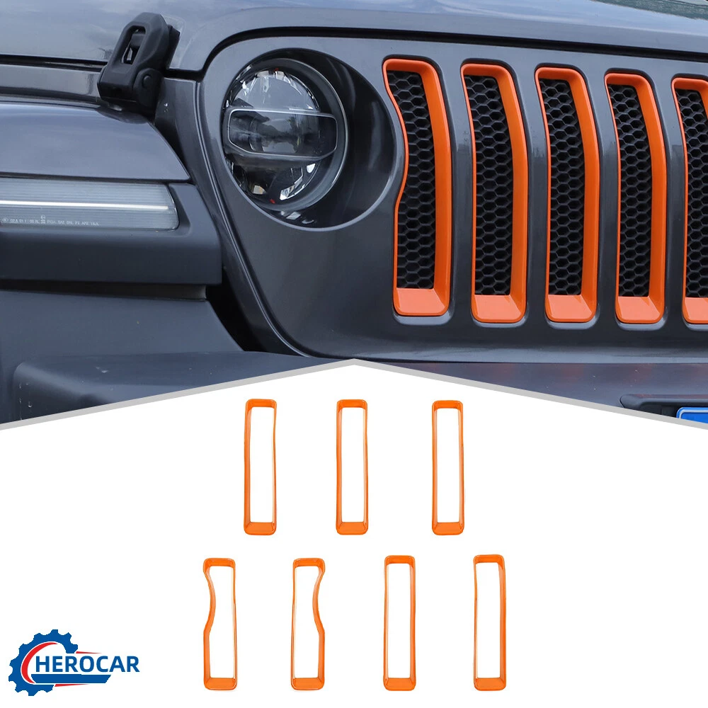 Front Grille Inserts Cover Grill Guard Trim For Jeep Wrangler Jl Jt 18 Orange Ebay
